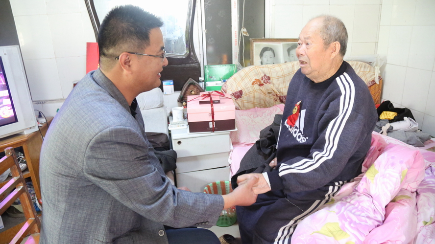 在省勞模李成永家中,93歲高齡的老人家熱情地拉著工作人員的手,激動地說:“感謝組織的關(guān)懷,企業(yè)一直沒有忘記我們這些老工人呀!”工作人員囑咐他要保重身體,安享晚年。