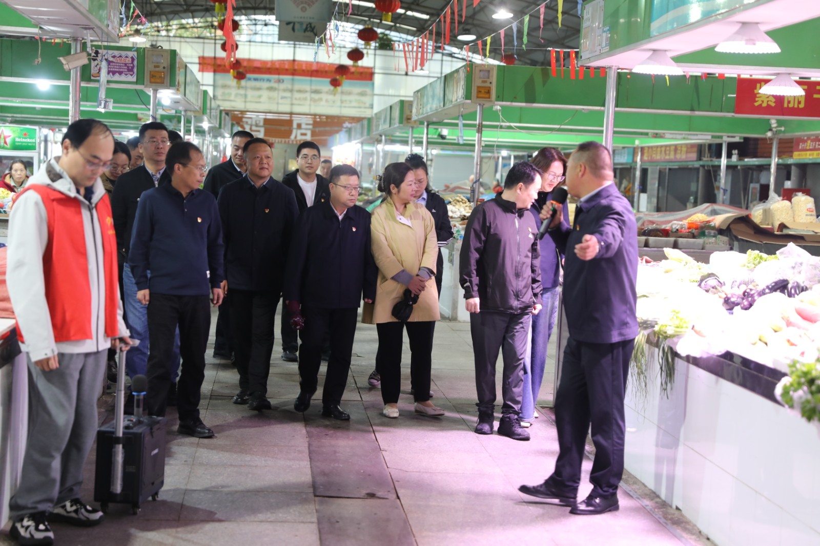 活動中,觀摩團沿著精心設計的路線,先后走進四大特色點位,每一處都展現(xiàn)出鮮明的黨建特色與發(fā)展活力。在金橋房地產(chǎn)公司黨總支負責的連云港國際醫(yī)藥創(chuàng)新產(chǎn)業(yè)園,“燈塔先鋒” 培育對象徐震結合產(chǎn)業(yè)園從規(guī)劃建設到招商運營的全流程,詳細分享了黨組織如何在產(chǎn)業(yè)布局、服務企業(yè)、創(chuàng)新發(fā)展中發(fā)揮 “主心骨” 作用,其 “黨建 + 產(chǎn)業(yè)” 的融合模式,讓在場人員深刻體會到黨建引領對產(chǎn)業(yè)高質(zhì)量發(fā)展的強大賦能;隨后,觀摩團來到供電工程分公司黨委負責的光伏運維現(xiàn)場,培育對象賀通華以光伏板下的 “紅色運維”為主題,講解了黨組織如何帶領團隊攻克技術難題、保障新能源高效輸出,綠色能源與紅色黨建的碰撞,為大家提供了“雙碳”目標下黨建工作的新思路;在王建勞模工作室,培育對象王建通過展示技術創(chuàng)新成果、分享師徒傳承故事,生動詮釋了“勞模精神 + 黨建引領”的育人模式,工作室里滿墻的榮譽與實用的創(chuàng)新工具,讓“精益求精、敢為人先”的精神深入人心;最后一站來到了金航公司巨龍農(nóng)貿(mào)市場,培育對象韓永躍圍繞“黨建+民生服務”,介紹了如何通過黨員示范崗、志愿服務隊等載體,優(yōu)化市場管理、提升服務質(zhì)量,切實保障群眾“菜籃子”安全,讓黨建成果看得見、摸得著。
