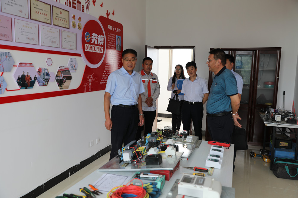 劉主席一行人來(lái)到臺(tái)北供電所參觀(guān)了剛剛建成的勞模工作室,勞模工作室的建成得到集團(tuán)領(lǐng)導(dǎo)的一致好評(píng),會(huì)上,公司工會(huì)主席王志軍從產(chǎn)改工作、民主管理、組織建設(shè)、權(quán)益保障、職工文化等五個(gè)方面匯報(bào)了工會(huì)相關(guān)的工作,市勞模王建介紹了勞模工作室的建設(shè)情況和下一步的工作打算。