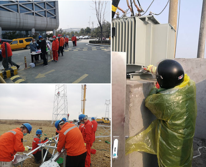 灌云益風(fēng)風(fēng)電35kV集電線路項(xiàng)目是公司首次自主安裝施工的重點(diǎn)推進(jìn)項(xiàng)目。為最大程度降低疫情影響,公司積極與當(dāng)?shù)卣块T溝通協(xié)調(diào),堅(jiān)決做到物資準(zhǔn)備、現(xiàn)場(chǎng)管控、安全防疫“三到位”。3月19日,該工程正式復(fù)工,為全力趕超工期,施工現(xiàn)場(chǎng)工人師傅們爭(zhēng)分奪秒、加班加點(diǎn),僅用6天時(shí)間,就完成了4基鐵塔的組裝,跑出了供電工程建設(shè)的“加速度”。