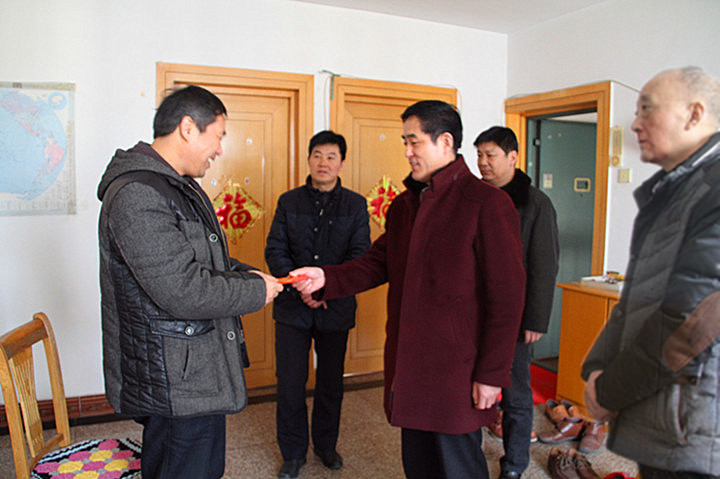 集團(tuán)公司組宣處處長(zhǎng)江舜軍,干部處副處長(zhǎng)孫同慶和公司領(lǐng)導(dǎo)王志軍等陪同走訪慰問(wèn)。﹙徐靜﹚