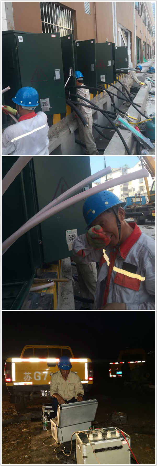 傍晚,剛剛干完活還沒吃飯的他們,又接到灌西和風(fēng)風(fēng)電項目電纜檢修任務(wù),顧不上休息,立刻驅(qū)車前往80公里外的灌西施工現(xiàn)場,對電纜做實驗,找出故障點并進(jìn)行更換。直至22點,才完成搶修任務(wù)。隨后,他們立即返回連云區(qū),準(zhǔn)備第二天的工程施工。