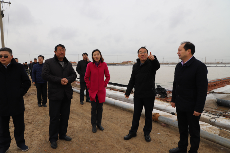 胡建明總經(jīng)理一行分別到原鈣液復(fù)曬區(qū)養(yǎng)殖池塘改造施工現(xiàn)場(chǎng)和新河制鹽分公司五班的扒鹽現(xiàn)場(chǎng)進(jìn)行實(shí)地調(diào)研,詳細(xì)了解工程的施工情況和日曬制鹽公司的生產(chǎn)情況。在原鈣液復(fù)曬區(qū),只見彩旗招展,幾臺(tái)挖掘機(jī)正在緊張施工之中,對(duì)灘地進(jìn)行養(yǎng)殖池塘改造,工程施工人員搶時(shí)間,抓進(jìn)度,爭(zhēng)取在養(yǎng)殖旺季來(lái)臨之時(shí),完成工程施工投入養(yǎng)殖生產(chǎn)。日曬制鹽公司目前已經(jīng)出動(dòng)五臺(tái)扒鹽機(jī)組投入到春季扒鹽工作中來(lái),預(yù)計(jì)上半年將完成25萬(wàn)噸的扒鹽任務(wù)。隨后在機(jī)關(guān)三樓會(huì)議室召開流動(dòng)辦公會(huì),投資公司董事長(zhǎng)李國(guó)文對(duì)灌西投資公司和日曬制鹽公司的生產(chǎn)經(jīng)營(yíng)情況進(jìn)行了匯報(bào)。他表示,2018年,灌西投資公司將積極迎接挑戰(zhàn),以“三超兩增一確保”為工作目標(biāo),產(chǎn)鹽58萬(wàn)噸,實(shí)現(xiàn)綜合利潤(rùn)翻一番工作任務(wù)而努力奮斗。同時(shí)也提出,公司當(dāng)前面臨原料礦鹵要漲價(jià)、原鹽一線員工年齡老化、職工小區(qū)房產(chǎn)證協(xié)調(diào)辦理等諸多發(fā)展難題,希望集團(tuán)公司領(lǐng)導(dǎo)給予高度重視。集團(tuán)公司領(lǐng)導(dǎo)相繼發(fā)言,現(xiàn)場(chǎng)辦公,針對(duì)各類問題分別進(jìn)行了研討,提出建議,解決問題。
