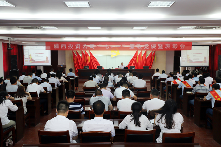為紀念中國共產黨建黨九十七周年之際,深入學習貫徹習近平新時代中國特色社會主義思想,6月28日上午,灌西投資公司黨委隆重召開“七·一”廉政黨課暨表彰會。投資公司黨政領導班子成員、各單位副職級以上人員、受表彰的先進、新發(fā)展的預備黨員、機關全體黨員、入黨積極分子等參加會議。會議由副總經理古浩光主持。