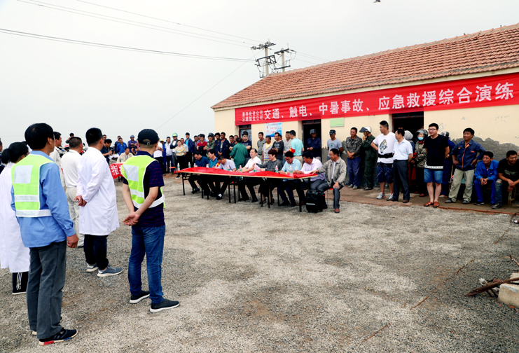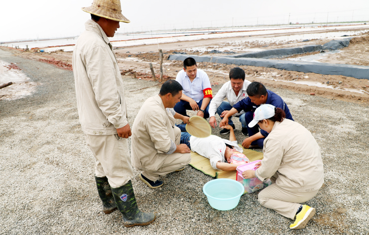 此次演練過程中,安全監(jiān)管部李長軍主持了這次演練活動,埒南制鹽分公司職工及管理人員參與其中,演練模擬現(xiàn)場有三個:1、職工在灘頭塑池堰上突然中暑(重度)。2、職工在廩基小鹽化鹵調(diào)鹵中接觸老化線路接頭時不慎觸電(傷害較重)。3、職工在上班途中三輛電瓶車相撞(跌傷較重)。在救援過程中,大家各司其職,齊心協(xié)力,配合默契,有條不紊成功完成了此次演練活動。通過這次應急演練,進一步提高了公司員工應對緊急事件的自我保護和防衛(wèi)能力,保證員工在發(fā)生突發(fā)事件時,能熟練應對、有序救援,最大限度地減少事故帶來的損害,切實保護員工的安全。