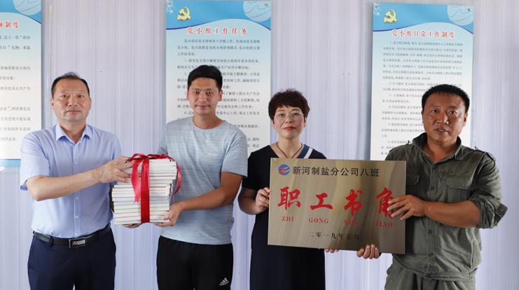 為鼓勵(lì)和支持員工不斷更新知識(shí),激發(fā)員工自我學(xué)習(xí)的能力,提升班組核心競(jìng)爭(zhēng)力,7月2日上午,灌西公司黨委書記、董事長(zhǎng)、總經(jīng)理李國(guó)文,黨委副書記、紀(jì)委書記、工會(huì)主席王宏為日曬制鹽班組贈(zèng)送圖書并授牌。