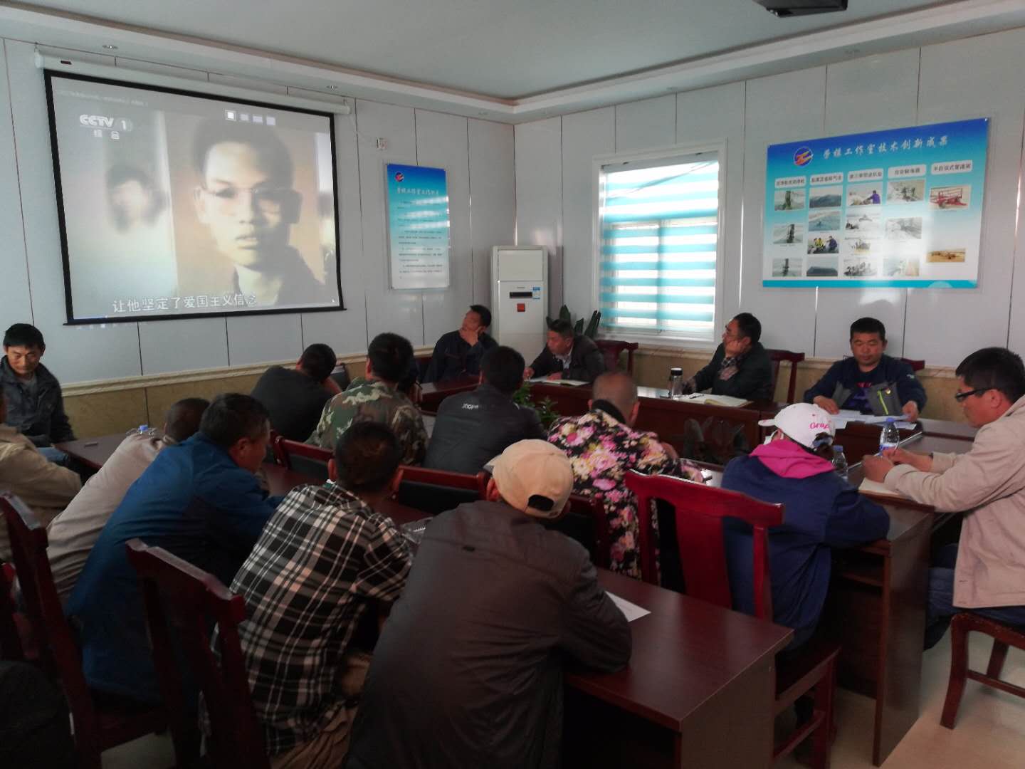 4月25日下午,新河黨支部召集全體黨員在勞?;顒邮矣^看《感動中國2017年度人物》系列短片。