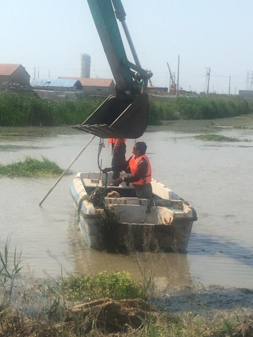 近日,機(jī)電服務(wù)公司租用長(zhǎng)臂挖掘機(jī)清理西旺公司泵站河道的水草。又因河道中間水草面積較大,挖掘機(jī)不能完全清理,機(jī)電服務(wù)公司機(jī)電組王緒華等人,租用小船用繩子加鐵鉤等辦法,清理河道中的水草。(蘇南)