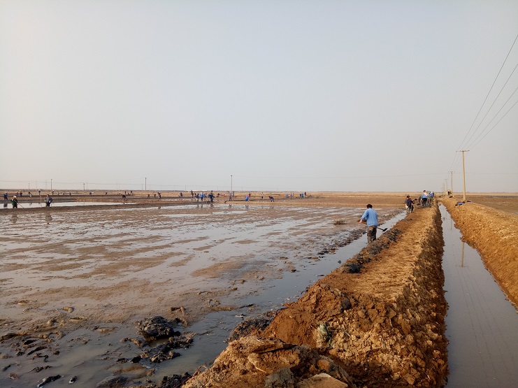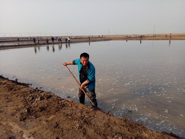 近日,實(shí)業(yè)公司制鹽分公司海鹽基地,一班班組灘場改造呈現(xiàn)出一片繁忙的景象。日曬制鹽新河制鹽分公司、埒南制鹽分公司等兄弟單位近兩日,輪流調(diào)動數(shù)百余人參加實(shí)業(yè)公司海鹽基地?fù)茰献鲔髸?zhàn)?,F(xiàn)場場面十分壯觀,大家干得熱火朝天:有挖泥澆水的、踩泥打堰的、抹埝找平的......員工們齊心協(xié)力地打好這次攻堅(jiān)戰(zhàn)。本次共計(jì)撈溝做埝近四千米。實(shí)業(yè)公司全體員工對兩公司的辛勤勞動給予了贊許和由衷的感謝。(史祥燕)