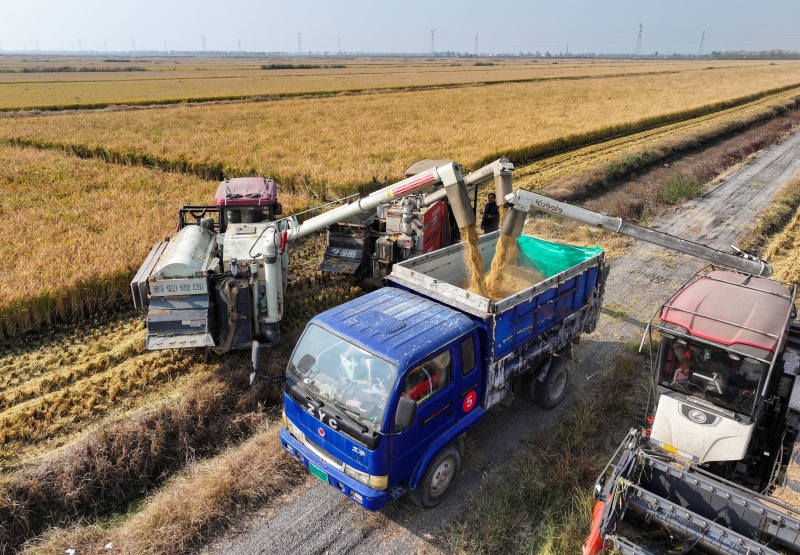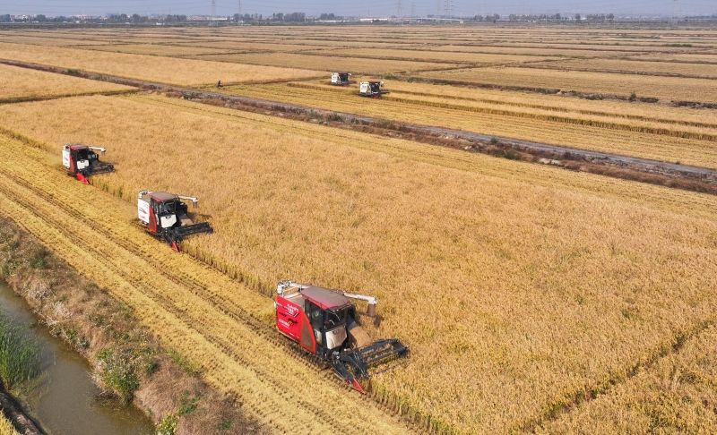 近日,青口投資公司萬(wàn)畝耐鹽堿水稻收割正如火如荼展開(kāi),大地上洋溢著豐收的喜悅,頻頻傳來(lái)喜訊。今年秋糧豐收的背后藏著三個(gè)重要的“密碼”。