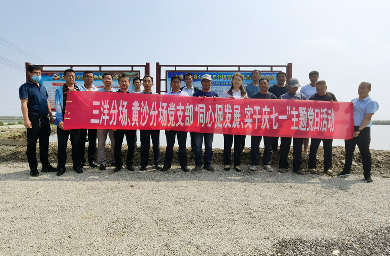 在“同心促發(fā)展 實(shí)干慶七一”主題黨日活動(dòng)現(xiàn)場中,三洋分場、黃沙分場黨支部邀請(qǐng)長期在全國從事漁業(yè)科技服務(wù)的珠江水產(chǎn)研究所彭勇鰲工程師,深入到池塘的養(yǎng)殖一線,查看、詢問養(yǎng)殖戶們?cè)陴B(yǎng)殖過程中遇到的難題,并有針對(duì)性地做出養(yǎng)殖新技術(shù)幫扶和推廣志愿服務(wù)活動(dòng),為養(yǎng)殖戶們排憂解難,不斷提高養(yǎng)殖效益。