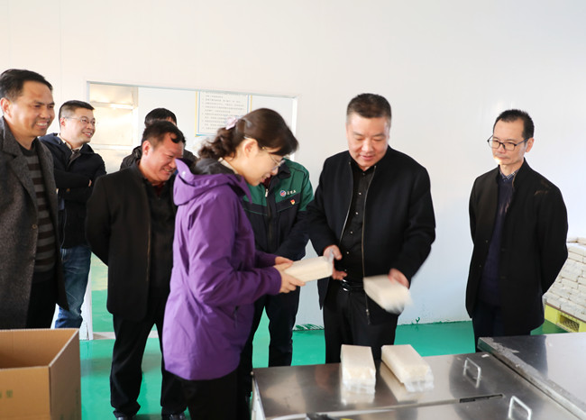 新米上市,線上線下同步火爆銷售,“鹽田玉”大米生產(chǎn)加工車間有條不紊忙碌著,流水線上的工人們,熟練的將大米裝袋、封口、堆碼整齊。青口公司史書記向汪書記一行,詳細介紹大米的生產(chǎn)、銷售、市場行情,并匯報明年新產(chǎn)品開發(fā)和產(chǎn)線延伸思路,汪書記給予充分肯定,并強調(diào)三點:一是做好大米銷售運輸同時,提高防范意識,做好疫情防控工作;二是結(jié)合線上線下資源,做好品牌營銷工作;三是深入調(diào)研,提前謀劃,做好新產(chǎn)品開發(fā)工作。