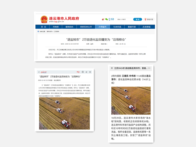 今年收割期間,人民網(wǎng)、光明網(wǎng)、江蘇24小時、連云港市人民政府網(wǎng)、連云港日報連續(xù)報道了我公司鹽堿地水稻豐收、秸稈綜合利用等工作舉措。我公司在現(xiàn)代農(nóng)業(yè)發(fā)展和生態(tài)文明建設中取得的成就受到了媒體廣泛關注。(青宣)