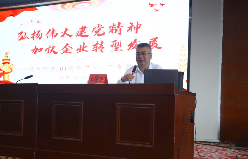 公司黨委書記、董事長、總經(jīng)理王德志為與會黨員上“七·一”專題黨課。他生動地闡述了自建黨以來,中國共產(chǎn)黨一代又一代的領(lǐng)導(dǎo)人帶領(lǐng)中國人民謀幸福的偉大征程。王德志指出2019至2021三年間,公司業(yè)績實現(xiàn)“三連增”,順利完成“一減半、兩年扭虧、三年新高”的發(fā)展目標(biāo)。